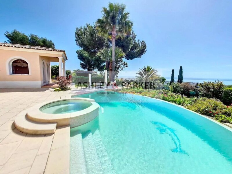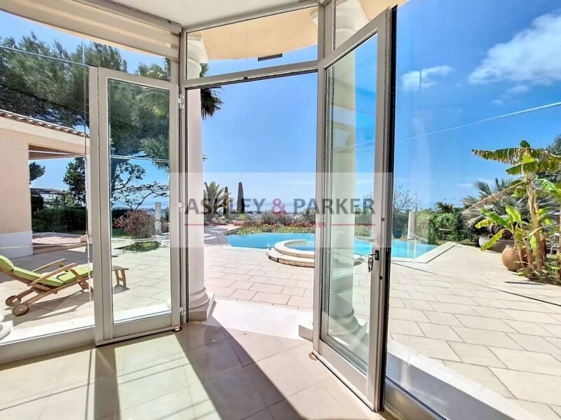 SOLE AGENT - RARE - CAGNES-SUR-MER - PANORAMIC SEA VIEW Located in the sought-after GROS BUAUX district, 5 minutes from DOWNTOWN and the beaches, in a DOMINANT and QUIET POSITION, SOMPTEOUS INDIVIDUAL VILLA with INFINITY POOL and INPRENSABLE VIEW of the SEA, the MOUNTAINS and the town. Discover this superb 4-5 ROOM villa on two levels, located in an IDYLLIC setting with NO VIS-A-VIS and breathtaking panoramic views. This exceptional property combines elegance, comfort and tranquility. From the moment you enter the house, you'll be amazed by the EXCEPTIONAL LUMINOSITY that bathes every room. The spacious entrance hall leads to a vast living room with a CEILING HEIGHT of 6.5m, flooded with natural light thanks to large windows. The large, fully-equipped kitchen also features a practical pantry for extra storage and opens onto a convivial dining room overlooking a terrace, ideal for a fresco dining. The MASTER-BEDROOM, exceptionally large at around 50 m², includes an anteroom, a dressing room, a bathroom with WC, and benefits from a SEA VIEW and a terrace. The other two bedrooms are located upstairs, all equipped with built-in closets and en-suite shower rooms with WC, offering a comfortable and elegant space with SEA VIEW. A guest toilet with washbasin is also available for added comfort. The exterior is just as impressive, with an INFINITY POOL with integrated JACUZZI and breathtaking sea and mountain views. The GARDEN and MULTIPLE TERRACES are ideal for relaxing or entertaining guests. The LAND has a total area of 2,852 m², offering the possibility to build a new construction of approximately 110 m². Ideal for accommodating family, friends, or household staff. The villa also boasts a huge, healthy BASEMENT of approx. 180 m², offering numerous design possibilities. A spacious GARAGE of approx. 60 m², with space for up to 4 cars, completes this property. Features : Underfloor heating/cooling heat pump with thermostat in each room, burglar-proof double-glazing, fireplace with wood-burning insert, electric shutters, infinity pool with integrated Jacuzzi, outdoor lighting. Location: Located in a sought-after residential area, this villa benefits from a QUIET and SECURE environment, yet is close to the town's amenities. Possibility of acquiring an adjoining buildable plot, in addition to the price. Don't miss this unique opportunity to acquire an EXECPTIONAL PROPERTY. Make this dream villa your new home! État des risques et pollution: réalisé (null).