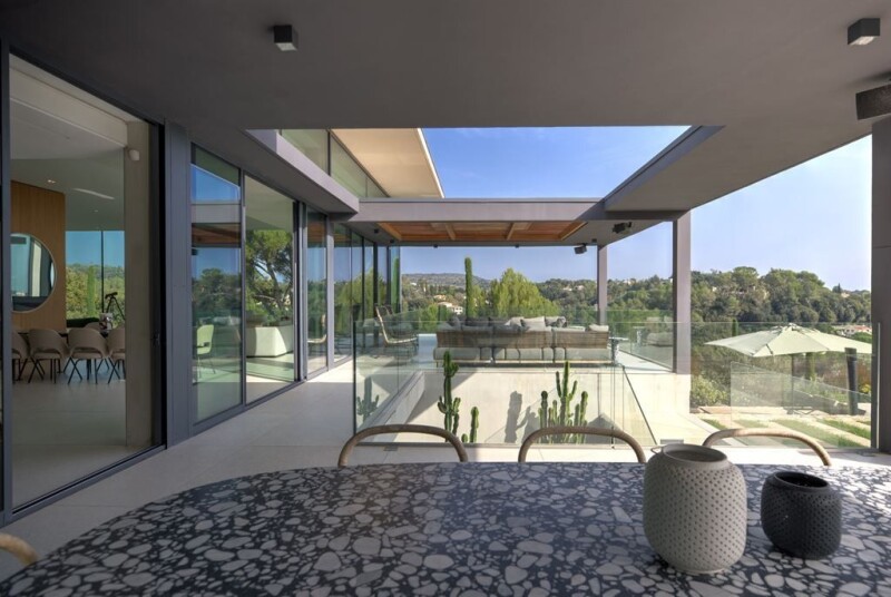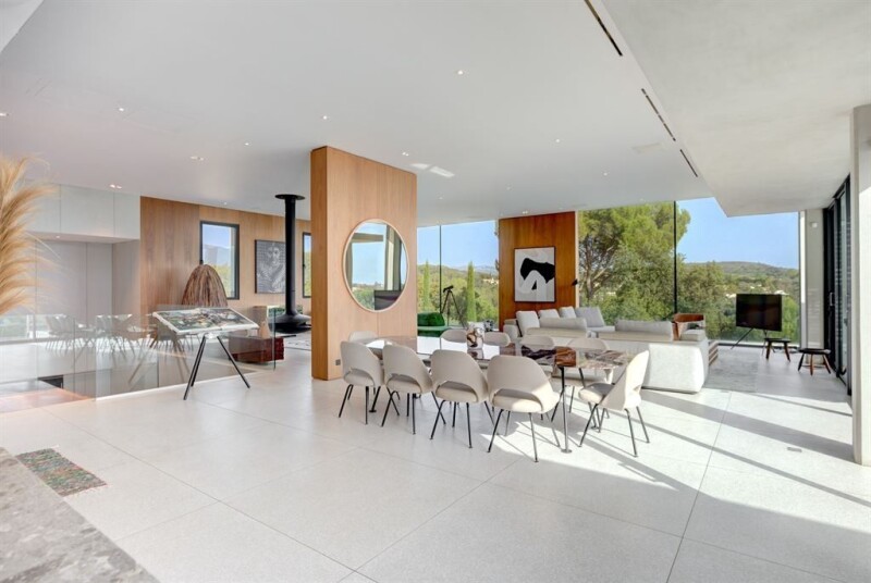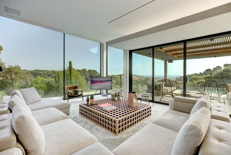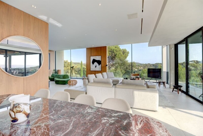 Located at the end of a quiet cul-de-sac in a secure and sought-after domain, this magnificent contemporary villa, designed by a renowned architect, offers breathtaking views of the sea, the surrounding hills, and the picturesque village of Biot. The property features a spacious entrance that opens into a double living room, a dining area, and a modern kitchen, creating a seamless connection with the outdoors through large windows. The villa boasts six en-suite bedrooms, including an elegant master suite, as well as a cinema room, a wine cellar, a laundry room, a garage for two cars, and several parking spaces. Outside, a sumptuous heated infinity pool measuring 18 x 4 meters extends over a meticulously maintained landscaped garden, providing a peaceful ambiance. Discreet terraces invite relaxation, while a lush vegetable garden completes this outdoor space. Ideally situated, the property is close to the village, schools, the Mouratoglou tennis academy, and Nice Airport, which is just 20 minutes away. This is a unique opportunity on the market, contact us today to find out more.