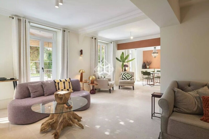Ideally located in one of the most sought-after areas of Cannes, just a few minutes from the city center, this splendid and charming villa has been completely renovated with modern amenities. This villa offers an ideal living environment. Secluded from view, you will enjoy a living area of approx. 250m2, including a cosy reception room with a bar area ideal for convivial moments with family or friends. Five bedrooms complete the property. Particular attention has been paid to the landscaping, with a nice pool area and pool-house. The shaded terraces that extend the interior living space allow you to take full advantage of the charms of this villa. Garage and two-car parking space. Sonos system, reversible air conditioning, underfloor heating.