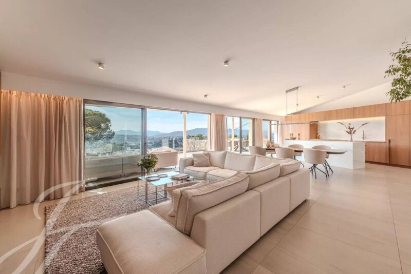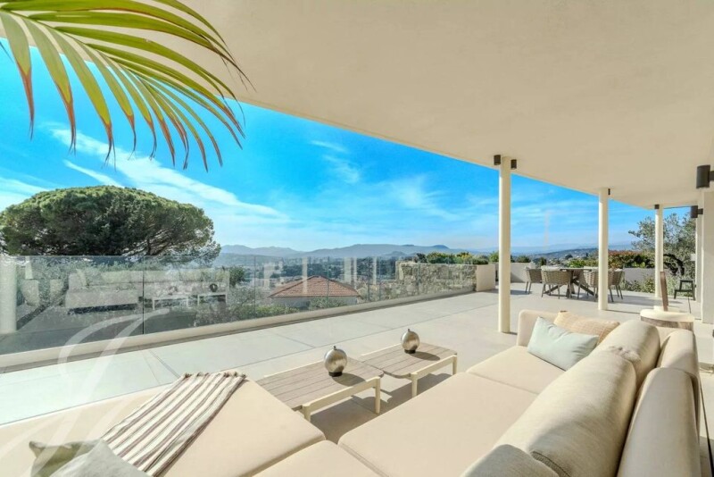 Superb new contemporary villa in a dominant position with sea and Esterel views in a quiet and sought-after area, only a few minutes' walk from the shops in Le Cannet. Built on a landscaped plot of approximately 1,300sqm with swimming pool, designed by a renowned architect, the villa is sublimated by top-of-the-range materials, offering spacious living areas with large openings onto terraces and exteriors, 5 en suite bedrooms including the master bedroom with walk in closet and en suite bathroom. A gym, TV lounge, cinema room and double garage complete this must-see villa.