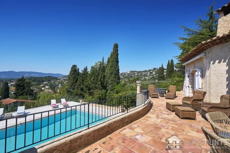 Located several minutes drive from Cannes, in a sought-after gated community, this charming Provencal-style property offers stunning panoramic views over the surrounding hills and the sea. The house is built on a plot of around 2390m2 with a large pool and pool house. South-West exposure, great location, nice and quiet, close to a golf course and an international school. The property features a spacious reception room opening onto the terrace, fully fitted kitchen, and 3 bedrooms with en suite bathrooms on the ground floor. The master bedroom suite is on the first floor. On the garden level there is a guest apartment and a very large games room. Full details available upon request.