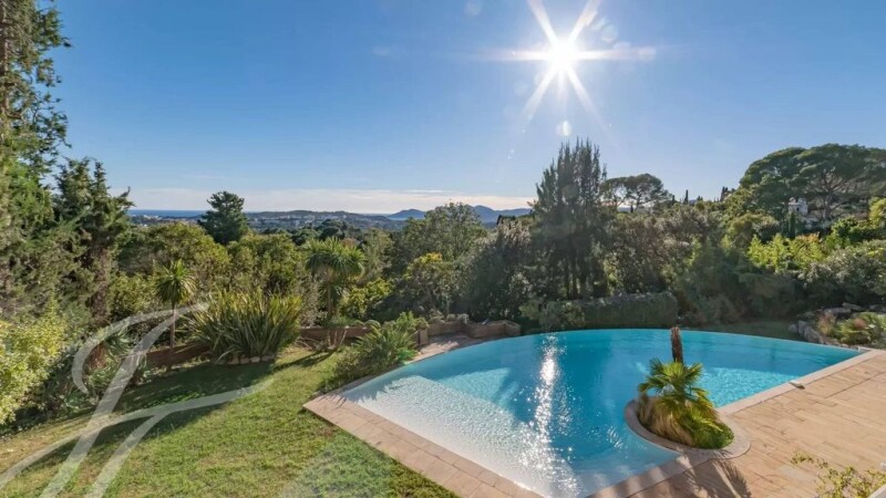 Between the old village and the center of Mougins, in a quiet cul-de-sac, this beautiful villa offers magnificent views of the sea, the Lérins islands and the Estérel massif. Set in landscaped grounds of 1838 m² with infinity pool, it offers 362 m² of living space plus outbuildings (431 m² in total) over three levels. It comprises First floor: living room, dining room, laundry room and terrace. Garden level: 2 bedrooms, 2 bathrooms with toilet, games room, storeroom, separate toilet and terrace. First floor: entrance, master bedroom, bathroom with toilet, additional bedroom and separate toilet. A large 46 m² garage completes this quality property.