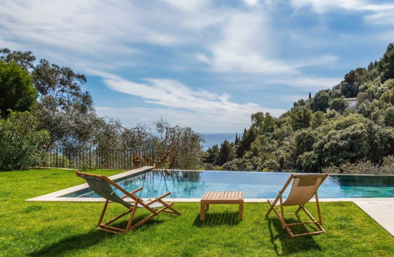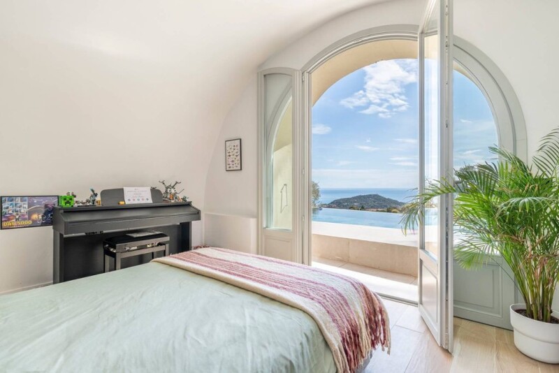 Close to Monaco, this exceptional villa boasts breathtaking views over Saint-Jean-Cap-Ferrat and offers quick access to major routes. Nestled within over 3,400 m² of landscaped grounds, it combines peace and elegance, surrounded by centuries-old olive trees and lush Mediterranean vegetation. The bright and spacious living room opens onto a terrace with a truly spectacular panorama. The high-end kitchen leads to an outdoor dining area with built-in barbecue. On the night side, the principal suite with private terrace, along with three additional en-suite bedrooms, ensures comfort and privacy for all. An independent guest house, an infinity pool, a sun deck, and a summer kitchen complete this idyllic setting. Secure and equipped with parking for up to four vehicles.