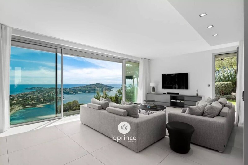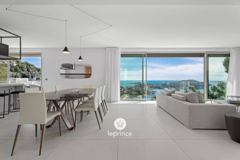 Villefranche-sur-Mer, in a private and secure estate under the “Corne d'Or”, in absolute calm. Exceptional contemporary architect-designed villa built in 2022, with a surface area of 360m2 harmoniously distributed over three levels, all on a landscaped plot with a 20m swimming pool and wooded terraces, and a luxuriant garden with the many colors and fragrances of Mediterranean essences. Dominant and impressive view over the Rade de Villefranche-sur-Mer and the Presqu'ile de Saint-Jean-Cap-Ferrat. Direct access by elevator or stairs to the top floor of the property, which comprises the living area, lounge, dining room and fully-equipped, top-of-the-range open-plan kitchen and its islands opening onto a large open-air terrace and hanging garden. Back office adjoining the Kitchen and large Wine Cellar. Guest toilet. On the intermediate level, a true private space of 100m2 comprising a large 40m2 Lounge and Masterbedroom with Bathroom, above-ground bath and shower, and Dressing Room. All opening onto a large Terrace with its “postcard” view, and a Garden planted with fruit trees. Garden level: Hammam, four en suite bedrooms with private bathrooms, opening onto a new Terrace, the Garden and the Pool. Each private floor has plenty of storage and dressing space. Top-of-the-range amenities and XXL modern comfort, interior elevator connecting each floor, home automation. A separate apartment, ideal for guests or staff, and several parking spaces complete this absolutely unique property! Fees are payable by the Vendor. Full presentation file available on request. Information on the risks to which this property is exposed is available on the Géorisques website: georisques.gouv.fr État des risques et pollution: réalisé (null).