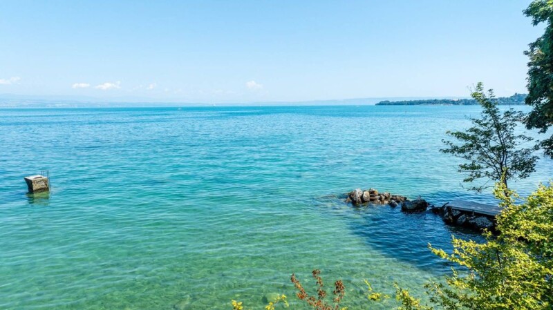 EVIAN SOTHEBY'S INTERNATIONAL REALTY presents: Located near Port de Rives and the Corzent district, this lakeside property stands out for its sleek design and quality renovation by the Parisian architecture firm Bigeault & Taïeb. It features a wooded park of 3,500 m² that slopes down to Lake Geneva. Discreet, protected, secure, and close to all amenities, the residence is a true haven of tranquility. On the ground floor, a spacious living room opens completely onto a terrace of over 40 m², offering an unobstructed view of Lake Geneva. This level also includes a fully equipped and functional kitchen, a bedroom, and a bathroom. Upstairs, four additional bedrooms are ready to accommodate family and friends. The basement houses two bright bedrooms with direct access to the park and the lake, adding even more charm to the villa. A bathroom and a large garage complete this level. To fully enjoy swimming, a gravel beach with a removable dock on the natural rocky shoreline provides direct access to the lake. EVIAN SOTHEBY'S INTERNATIONAL REALTY, YOUR EXPERT IN LUXURY PROPERTY SALES ON THE SHORES OF LAKE GENEVA AND SURROUNDING AREAS.