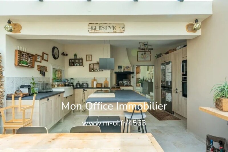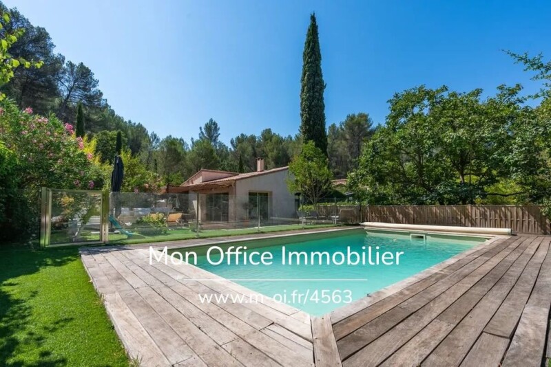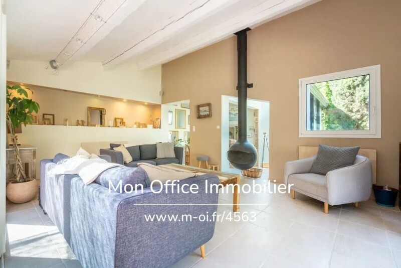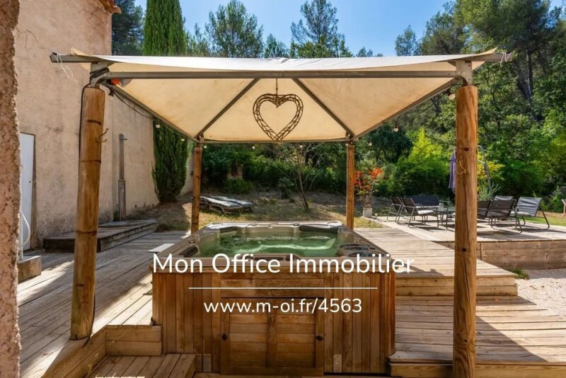 M-OI presents for sale this property built on a plot of 5000 m2 in the pines comprising 2 houses of 130 and 90M2 each with 44 m2 of annex including a garage. The main house offers an entrance leading to a beautiful living kitchen with fireplace, flooded with light through a large glass roof, a living room with fireplace opening onto a large terrace and a secure swimming pool area, a sleeping area including a master suite with bathroom water, 2 bedrooms each with a mezzanine and an additional bathroom. The second, adjoining house of 90 m2 has a kitchen open to the living-dining room with fireplace and opens onto a covered terrace. 3 bedrooms, a shower room and a bathroom complete the package. Jacuzzi outside. The 2 houses can communicate by creating an opening through the 2 kitchens. The outdoor living spaces are very distinct and not overlooked. A sauna, a garage, a storage space and a laundry room complete the property. Lots of charm for this quiet property, close to shops and public transport. -- -- À votre service : Elodie HAVRET - +33745039019 Agent commercial Mon Office Immobilier immatriculé au RSAC de AIX EN PROVENCE - N°790 673 214 00033 Référence annonce : 4563-EHA. Le DPE est visible dans l'onglet informations énergétiques. Le prix indiqué comprend les honoraires à la charge de l'acheteur d'un montant de 4.45% inclu dans le prix affiché. Les informations sur les risques auxquels ce bien est exposé sont disponibles sur le site Géorisques : www.georisques.gouv.fr.