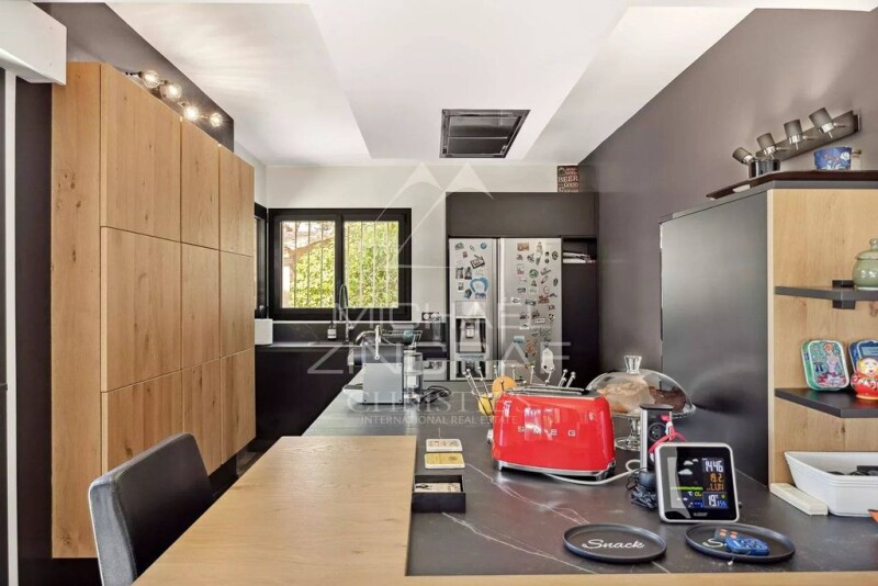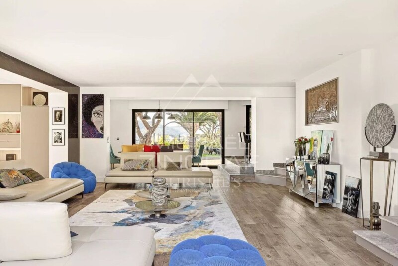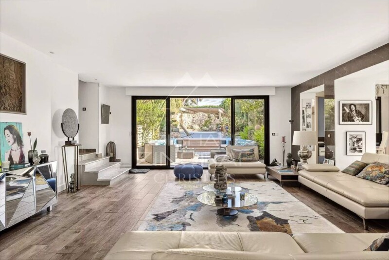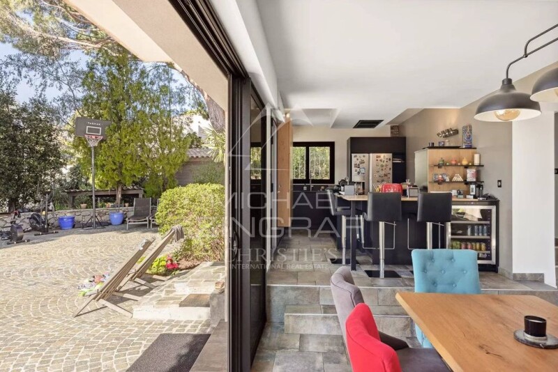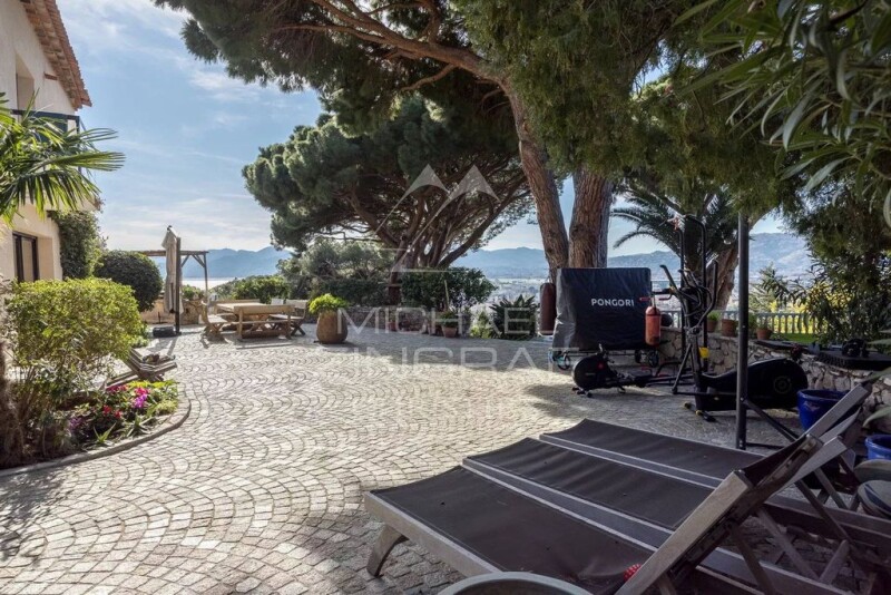 Ideally located in absolute peace and quiet, at the end of a quiet street, this modern Provencal-style villa has been completely and recently renovated in a contemporary style. With almost 290 sqm of living space, it boasts light and airy reception rooms with open-plan fitted kitchens that open directly onto the heated saltwater swimming pool on one side and onto a superb terrace on the other, overlooking the sea, where it's great to gather with family or friends in the shade of a hundred-year-old umbrella pine. Set in 2,672 sqm of grounds, with a separate 46 sqm guest house or caretaker's cottage, a tree house, a boules area, a 2-car carport and plenty of parking, this property is sure to appeal to those seeking peace and quiet just a few minutes from the hustle and bustle of Cannes.