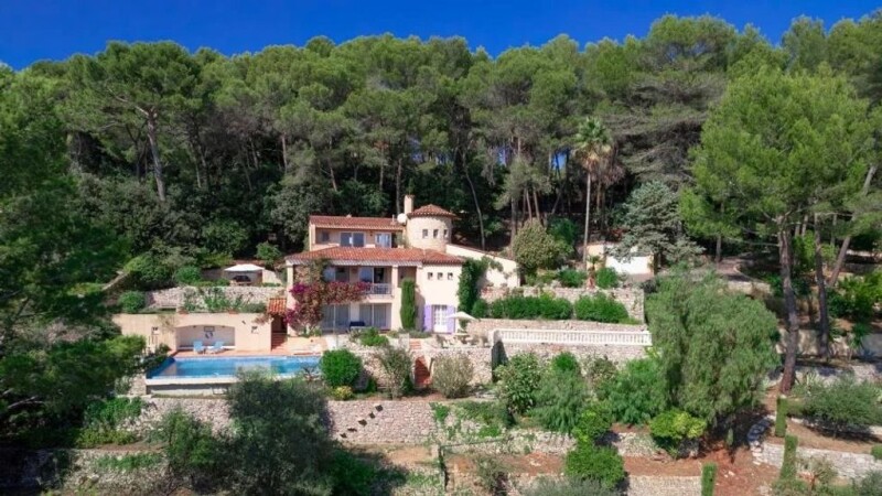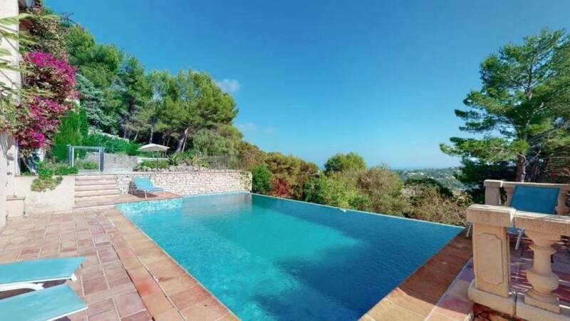 Close to Cannes, 14 minutes from the Croisette, magnificent property with panoramic views till the sea in the heart of a 25,000m2 park. Master villa of approx 350m2, entrance, guest toilet, living-dining room, kitchen, laundry, 5 en-suite bedrooms and infinity pool. Independent caretaker's house, garage and parking spaces.