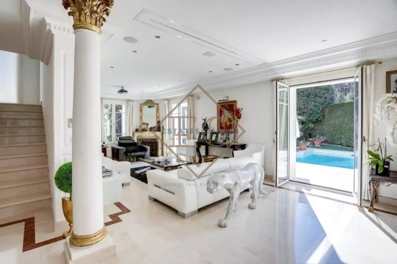 Discover this magnificent property in the heart of Cannes, just a five-minute walk from the Croisette. This exceptional estate consists of two houses, blending historical charm and modernity. With its 225 m², the main house is enchanted with its beautiful volumes and meticulous finishes. The bright living room, adorned with a fireplace, offers a welcoming space that opens to the outdoors. A fully equipped kitchen and a first bedroom with a shower room and hammam complete the ground floor. Upstairs, three refined suites, including a sumptuous master suite, ensure optimal comfort. The second house, modern and independent, spans two levels and includes three bedrooms and two bathrooms. Upstairs, a spacious terrace with a lounge and an open kitchen invites you to enjoy the warm summer evenings. Outside, a manicured garden and a private pool create a true oasis of tranquillity, while a double garage ensures your convenience. A rare opportunity where luxury and serenity meet, ideal for an exceptional living environment or a promising rental investment. Don’t miss this unique chance! État des risques et pollution: réalisé (null).