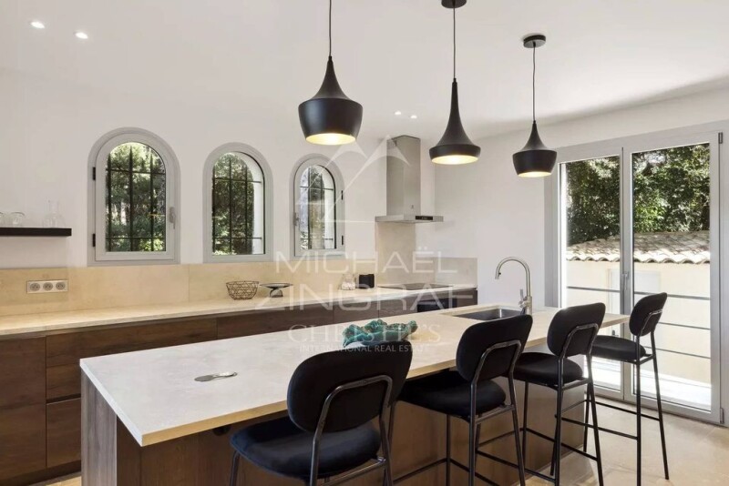 A sought-after location, close to Le Cannet Mairie and its shops, just ten minutes from the centre of Cannes, for this elegant 1930s property. Entirely renovated, the house features chic, minimalist and warm decor, making this property a place of resource, conviviality and reunion. With around 257 sqm of living space, it comprises a double reception room, a fully equipped kitchen and a study. Upstairs are 4 bedrooms, including a 30 sqm master suite. For even greater comfort, there is a garden level with a studio flat and two other rooms that could be converted to suit your needs (professional, au pair, etc.). Flat garden of approx. 817 sqm with swimming pool, carport for two cars. Ideal for a family as a primary and/or secondary residence.