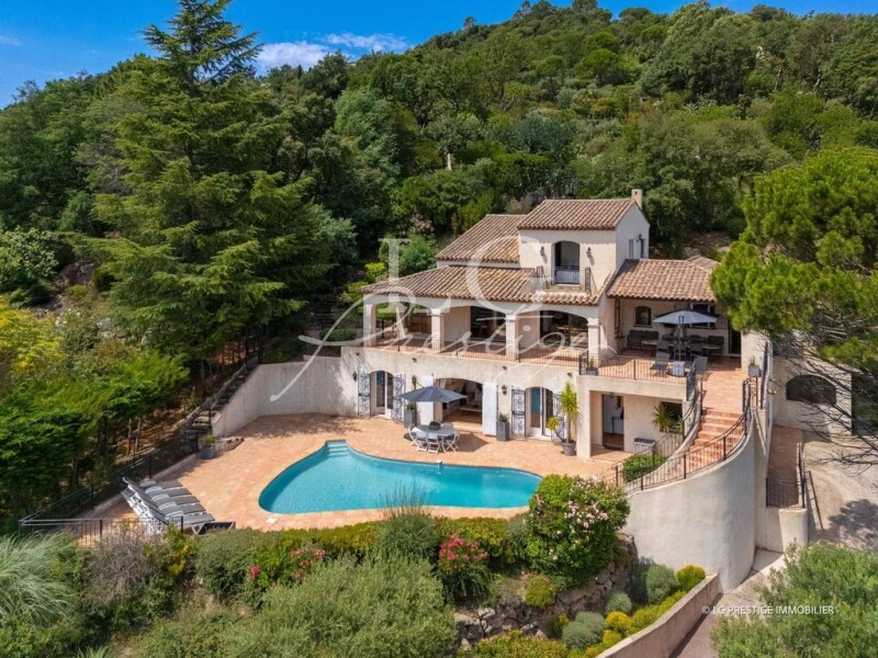 For sale in your agency LG Prestige Immobilier in Mandelieu-La Napoule : Near Mandelieu. In a secure, highly sought-after estate, discover this magnificent 330 m² villa with panoramic sea and Esterel views. Charmingly renovated in a bohemian chic style, this spacious residence features a double living room, five bedrooms, an office, four bathrooms and a shower room. A superb pool area with summer kitchen lets you take full advantage of the region's sunny days. The 1956 m² landscaped and fenced garden adds an extra touch to this idyllic setting.