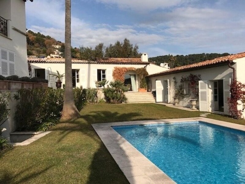 Magnificent 330 m2 Hacienda facing south and enjoying a sublime view of the village of Saint-Paul de Vence, consisting of a main house, a guest house, and a 50 m2 mazet + cellar. Renovated with top-of-the-range fittings, the property benefits from flat landscaped grounds of approximately 3000 m2, perfectly maintained with a beautiful pool area and numerous parking spaces. courtyard Main house of 220 m2 comprising on one level: an entrance hall, beautiful fitted kitchen, dining room, living room, a master bedroom with full bathroom, a guest bedroom. Lower level: master suite with full bathroom. Wine cellar and laundry room. Guest house of 120 m2 comprising on one level: an entrance leading to the living room, fitted kitchen and a spacious complete bathroom. Upstairs: 2 bedrooms. Lower level: wellness area with sauna and spa. Mazet of 50 m2 on 2 levels, to renovate, which can serve as a caretaker's house at the entrance of the property. Vaulted cellar on the ground floor.