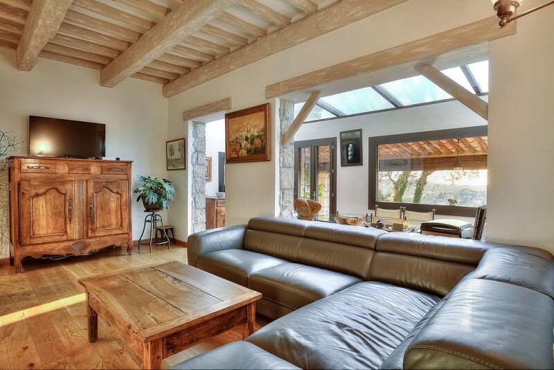 Ideally located on the hills of La Colle-sur-Loup and at a walking distance from the village and its amenities, a charming stone-built property of approx. 235 m2 enjoys breath-taking views on the village of Saint-Paul de Vence, the Cote d'Azur and to the Mediterranean Sea as well as an unparalleled brightness thanks to glass roofs. The property comprises an entrance hall, a sitting room, a dining room with glass roof, an open plan kitchen, 2 nice terraces around the house, 4 bedrooms, 2 bathrooms, a studio of approx. 20 m2 and a 1-bedroom apartment of approx. 35 m2 with private terrace and little private garden; laundry and car ports for 2 vehicles. The garden, of approx. 1,000 m2 is very easy to maintain and is a real extension of the living space. Near the kitchen, a lovely and charming terrace with stones, barbecue and pizza hoven are perfect for the summer and shiny days. Around the swimming pool, we especially appreciate the large views of Saint-Paul de Vence and over the sea, the terrace and the pool house with summer kitchen. A must see and unique property with charm and character!.
